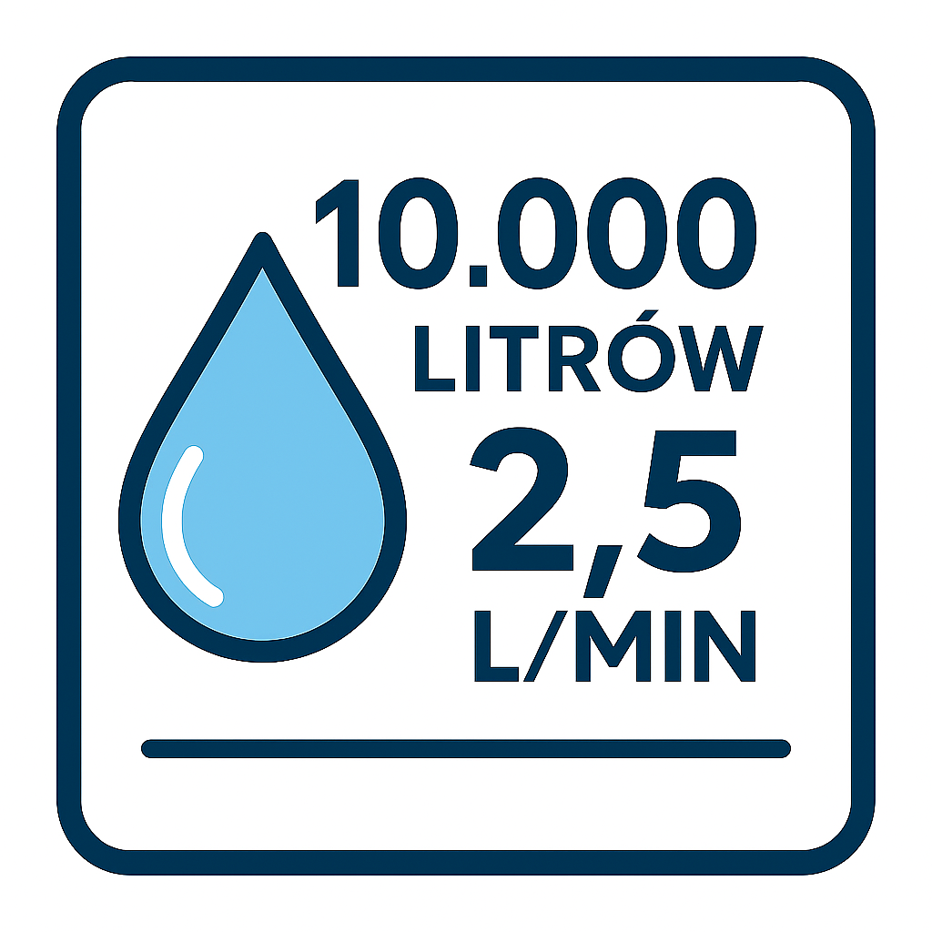 Wydajność filtracji wzrosła do 10 000 litrów, a gradientowa struktura pierwszego modułu zmienia porowatość z 10 do 3 mikronów, zwiększając skuteczność usuwania zanieczyszczeń.