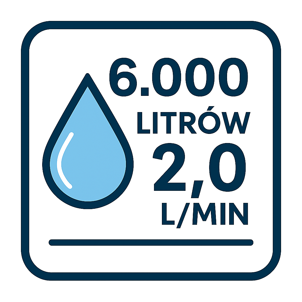 Wydajność filtracji wzrosła do 6 000 litrów. Szybkość filtracji: 2 L/min
