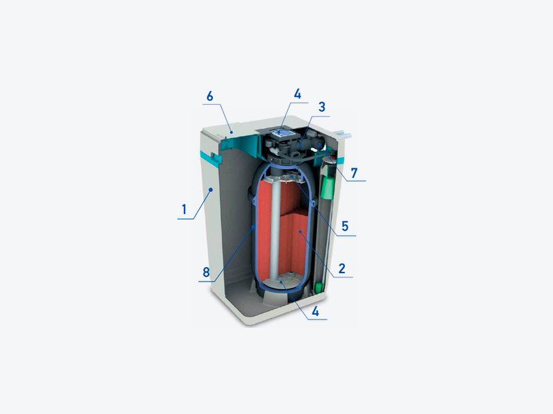 System wykorzystuje skalibrowaną, drobną żywicę jonowymienną, której powierzchnia kontaktu z wodą jest czterokrotnie większa niż w standardowych systemach. Dzięki temu nie gromadzi żelaza i nie ściera się przez tarcie.