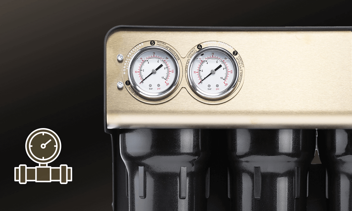 System RObust COFFEE wyposażony jest w manometry, które na bieżąco kontrolują warunki pracy pompy. Dzięki temu zapewnia stabilną wydajność, umożliwia wczesne wykrycie potrzeby serwisowania i wydłuża żywotność całego urządzenia